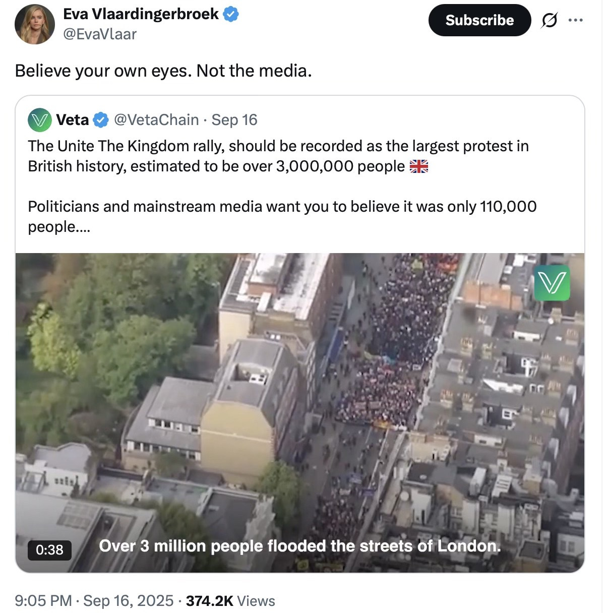 The Unite the Kingdom march was obviously attended by millions not thousands.