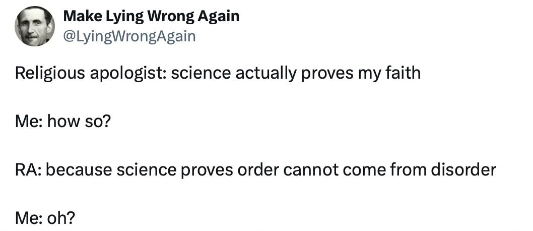 An atheist own goal? A self-desired humanist on X has set out to prove that you don’t need a Creator to have order come from disorder.
